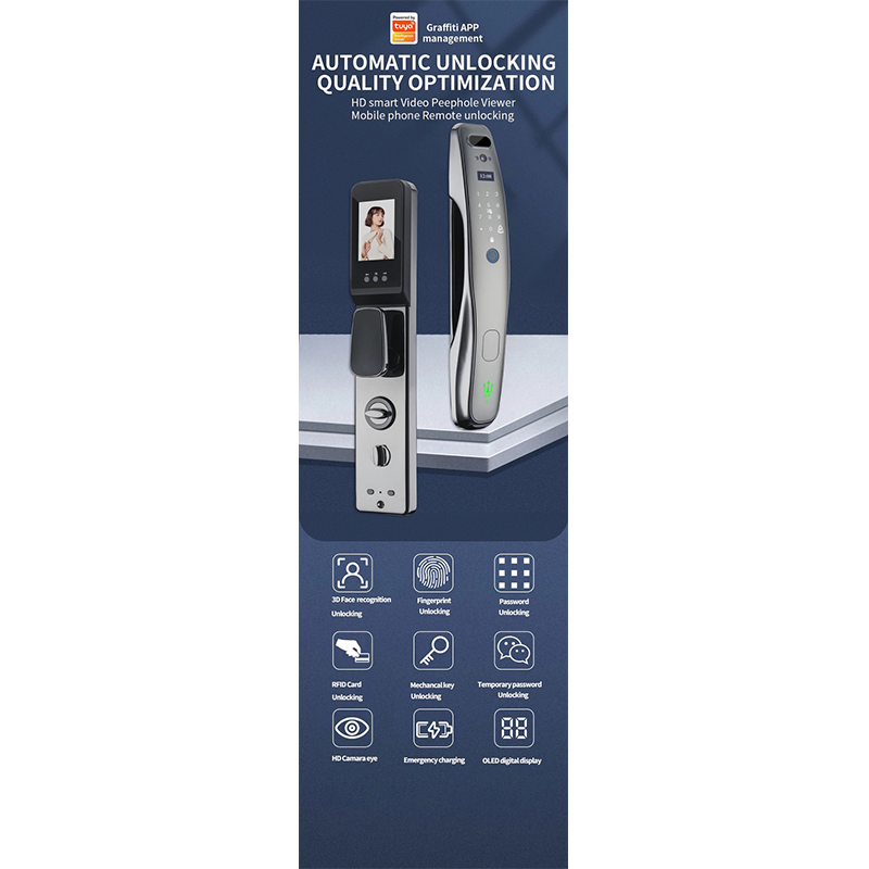 Upgrade your home’s security with a next-generation smart door lock. Enjoy keyless access via fingerprint, keypad code, or mobile app — all controlled from your smartphone. Built for durability, reliability, and everyday convenience, this lock is perfect for homes, rentals, and offices.